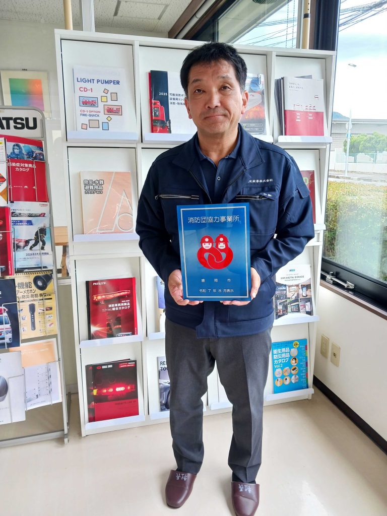 認定していただいたことに恥じないように日々消防・防災事業に邁進してまいります。